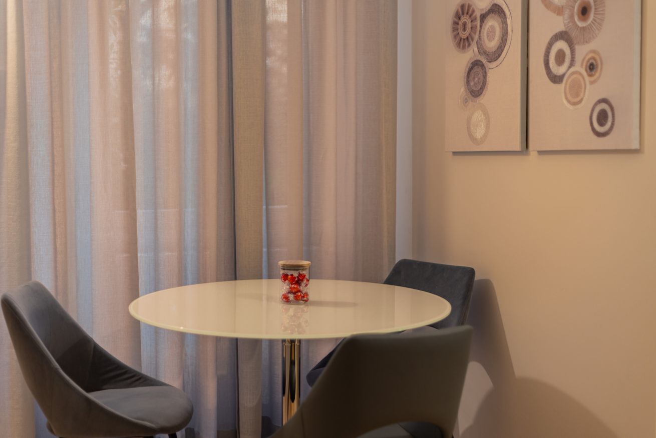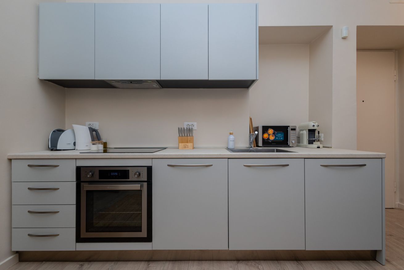 The apartment features a bedroom, a living room with a fully equipped kitchen and induction cooktop, a bathroom with walk-in shower and washing machine. Equipped with fast Wi-Fi and TV.